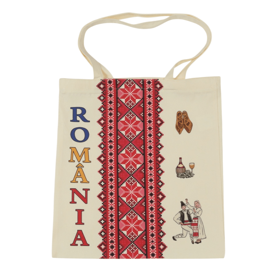 Traistă din bumbac cu motive tradiționale – model „România Opinci și Dansatori”